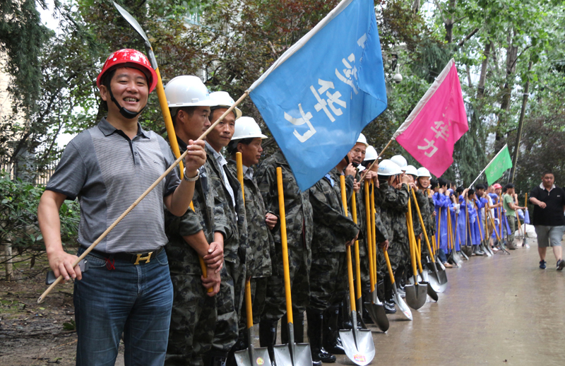 7月5日清晨,华力建设防洪抢险突击队80名队员,在华力防洪抢险指挥部副指挥长王亮的带领下,集结在清溪路与潜山路交口,按照既定的部署,开展抢险工作。