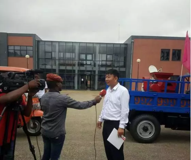 永进工贸董事长陈永保在接受安哥拉TPA电视台、广播电台的现场采访中,介绍了永进工贸农用车系列产品,包括自卸式环卫车、吸污车、冷藏车、移动售货车、柴油自卸轻卡,及专门针对非洲市场研制的多功能农用三轮车。