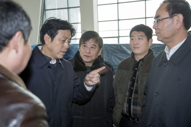 六安市市长毕小彬(右一)、华力集团王亮(右二)陪同谢广祥副省长(左二)调研