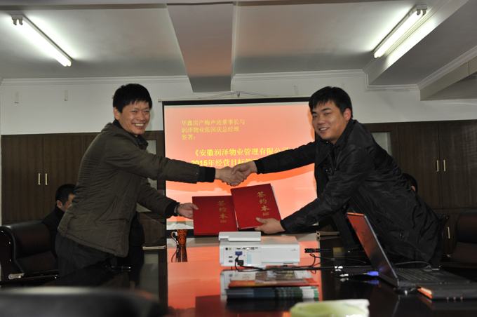 梅声涛与张国庆签订《安徽润泽物业管理有限公司2015年经营管理目标责任书》