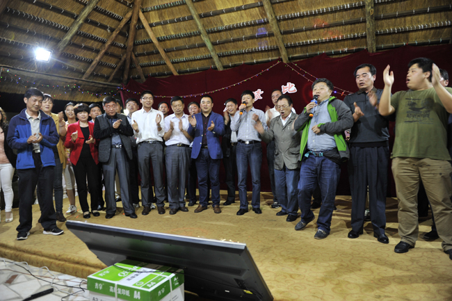 晚6时许,在《今天是个好日子》的音乐声中,刘进董事长陪同常前仓董事长及与会人员步入草棚,依次落座,晚宴与汇报演出开始。