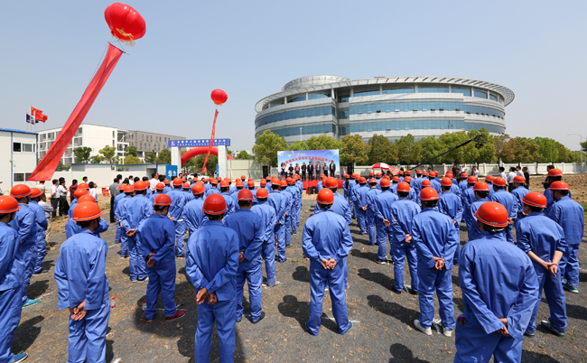 参加开工典礼的华力建设工人