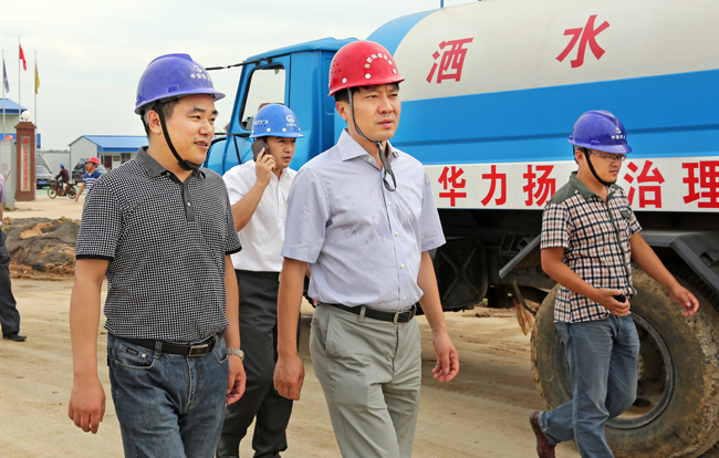 2015年7月2日下午,合肥城市轨道交通有限公司姚凯总经理、吴四二副总经理一行,冒着酷暑,在轨道交通一号线工地检查工程进度,特地来到华力施工的现场,华力建设王坤董事长陪同检查。