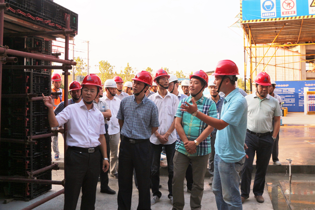 在菊园施工现场,刘总长一行在实物样板展示区,对在推行质量样板引路,给予高度评价。通过对的两栋楼的实体考察,对该工程使用新型纤维模板新材料,十分赞赏。使用后砼成型观感好,截面几何尺寸没有偏差极小,免除抹灰工序,从根本上解决了开裂、空鼓、渗漏等质量通病,并且产生了很好的经济效益。