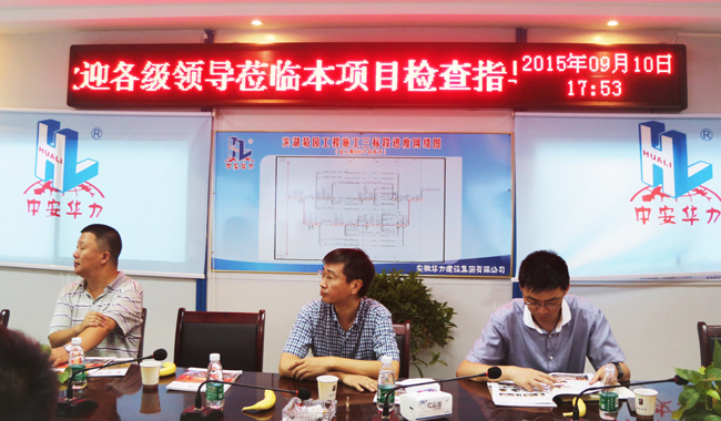 9月10日,省建设工程质量安全监督总站站长刘超、工程监督科科长季群等一行,在合肥市质量安全站总工程师孙巍的陪同下,就工程质量标准化建设、住宅工程质量通病防治等课题,并为今年“全国工程质量标准化会议”在安徽召开做好准备工作,来到华力施工的菊园项目部调研,华力建设总经理王亮、总工程师吴银国等陪同调研。
