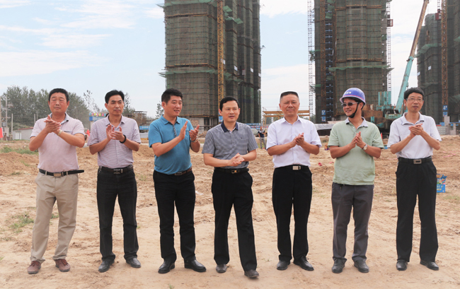 王亮总经理(左三)与高总(中)韦总(右三)、张总监(右二)在开工仪式上