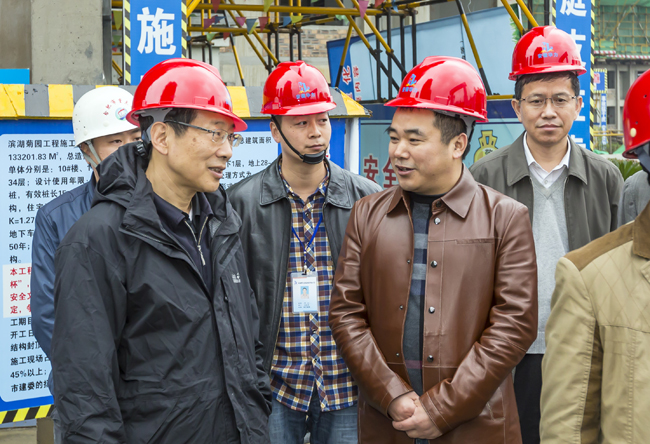 王坤董事长陪同市委常委、副市长陈晓波(左一)在现场检查