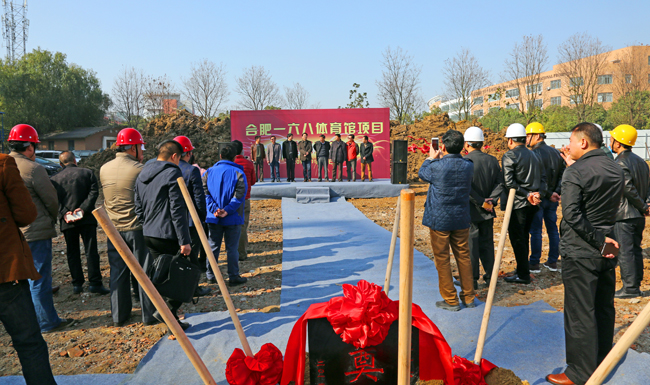 合肥市教育考试院、合肥市建委、合肥市教育局、一六八中学等相关负责人、一六八中学新建体育馆工程项目部员工及来宾近百人参加了开工典礼。