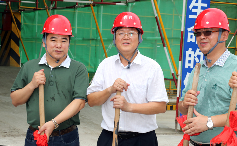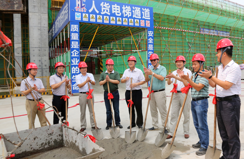 8月8日上午,由安徽华力建设集团有限公司承建的安徽建筑大学南校区实验综合楼工程举行节俭而又隆重的封顶仪式,安徽建筑大学校长方潜生、副校长宋箭,安徽华力建设集团有限公司董事长王坤,安徽建筑大学设计研究院院长章琳,安徽建筑大学勘测设计研究院院长李永杨,安徽建科建设监理有限公司总监杨世文,建设公司总工程师吴银国等,共同挥锹为封顶送上最后一筐浇筑混凝土。随后,掌声和着鞭炮声齐鸣,礼花在空中绽放,映照着高高耸立的实验综合楼主体大楼。