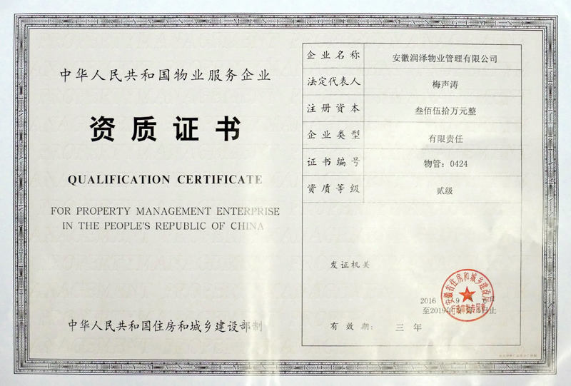 日前,经六安市住房和城乡建设委员会审核批准,并报安徽省住房和城乡建设厅备案,华力控股下属安徽润泽物业管理有限公司顺利晋升为物业服务二级资质企业,也是舒城县当地所属物业首个获得物业服务二级资质的企业。