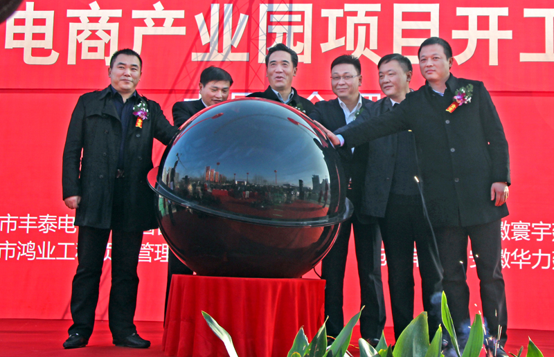 王坤董事长和李勇、李学明、张金杰、杨涛等领导嘉宾共同启动开工水晶球