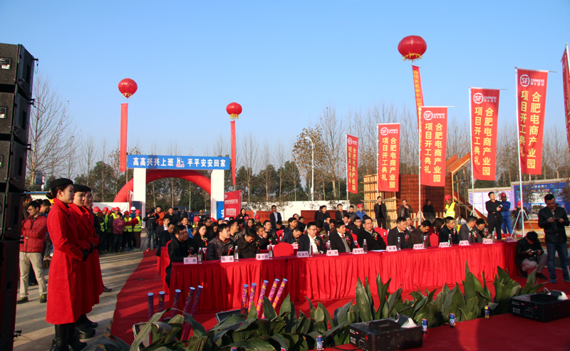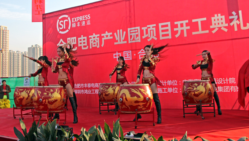 开工仪式在激情四溢的鼓乐声中开始,顺丰集团副总裁杨涛发表热情洋溢的讲话,对省市区有关领导亲临现场参加仪式表示感谢,指出,伴随着电子商务的快速发展,“智能化”成为快递业的潮流。顺丰速运又选择投入重金在合肥蜀山区建设智能分拣基地。顺丰速递合肥电商产业园,位于合肥市蜀山区,占地186亩,总建筑面积27万平方米,设有分拣中心、仓储设施、配套的研发设施等,项目计划2017年主体完成,2018年投入运营。杨涛副总裁希望在保障安全生产的前提下,项目组、总承包、监理公司各负其责,加快工程进度,按期完成并早日投入运营。