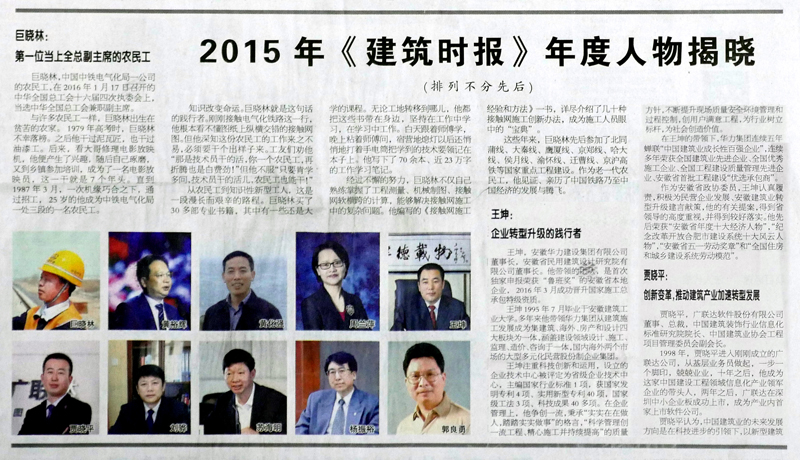 王坤董事长被评为“2015年中国建筑业年度人物”