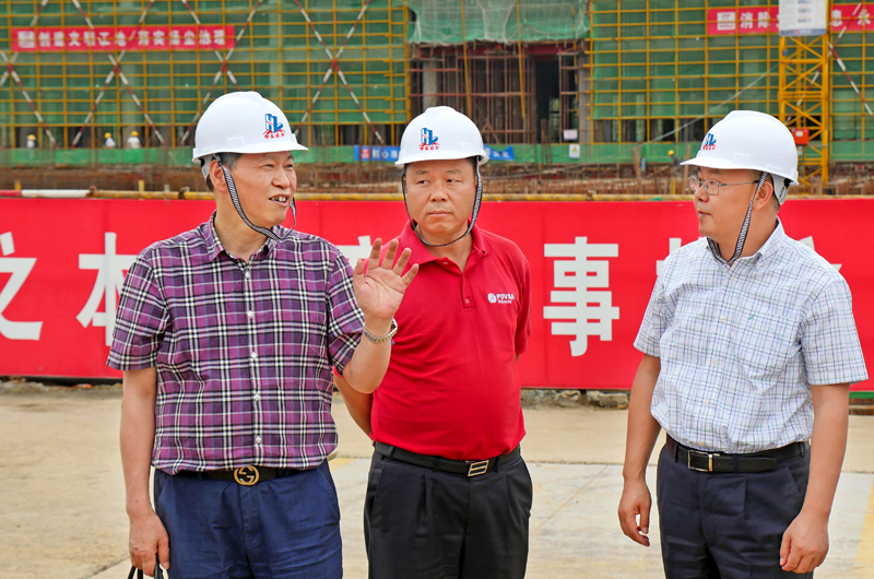 常前仓董事长(左一)与龚家炎总经理(右一)在施工现场交流