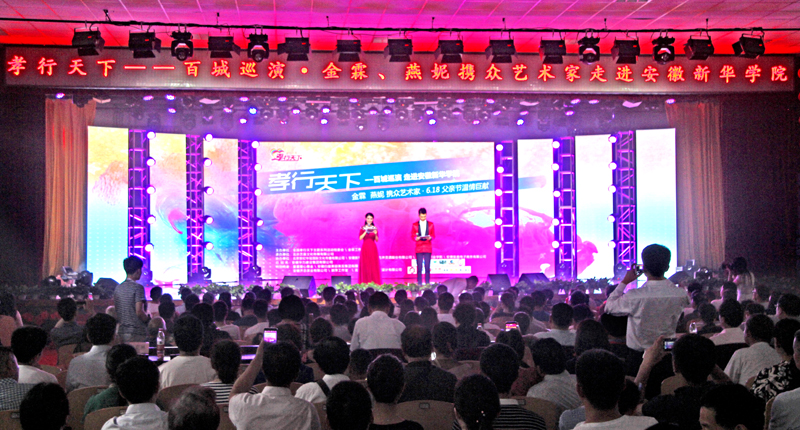 6月18日父亲节,由全国老龄委主办、华力建设集团冠名的“孝行天下百城巡演”温情走进合肥,空政文工团国家一级演员、舒城女儿燕妮携众艺术家,邀请合肥全国孝老爱亲中国好人齐聚安徽新华学院,用爱和孝道诠释父爱如山,弘扬中华传统孝文化。