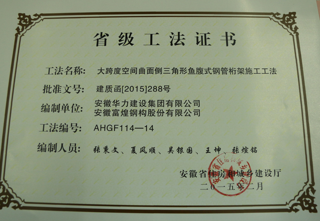 近日,建设公司从省住建厅领取了《短肢剪力墙组合加固模板系统施工工法》、《基础底板后浇带轻型降水井点多重防水封堵施工工法》粉砂土质边坡组合式支护施工工法》等独立或联合开发八项省级施工工法。这八项省级工法的获得,不仅是华力建设科技研发水平的体现,更是先进施工方法的积累,有利于公司不断提高技术竞争力,打造质量标杆,提升公司品牌形象。