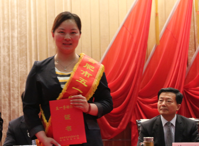 2015年4月28日上午,合肥市庆祝“五一”国际劳动节暨先进表彰大会在政务中心小会堂隆重举行。省委常委、市委书记吴存荣出席会议并做重要讲话,市委副书记、市长张庆军主持会议。市人大常委会主任熊建辉,市政协主席董昭礼,市委副书记凌云,市人大常委会副主任、市总工会主席孔向阳,副市长王翔,市政府秘书长杨伟等出席会议。华力建设公司经营管理部部长胡冬梅荣获“五一劳动奖章”,受到表彰,并作为获奖代表上台领奖。
