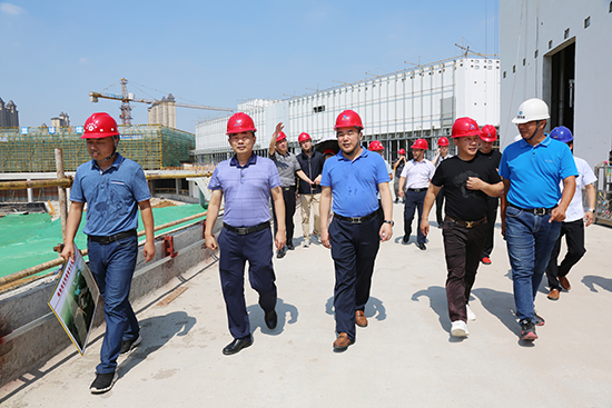 8月2日上午,合肥市经开区党工委副书记、管委会副主任桑林兵,党工委委员、社会发展局局长李应天,建设发展局副局长许峰云,财政局副局长石华,社会发展局副局长刘道芝,重点管理局副局长尹国周,海恒集团资产管理部陶刚,合肥国达公司负责人万劲松一行,来到中安华力建设集团承建的南艳湖全民健身中心项目进行考察、工作指导。