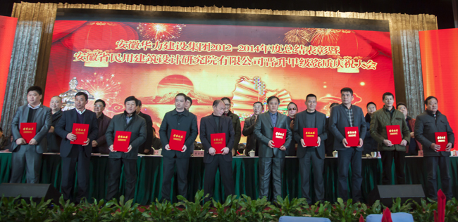 2015年1月31日,安徽华力建设集团2012-2014年度总结表彰暨安徽省民用建筑设计研究院有限公司晋升甲级资质庆祝大会在稻香楼宾馆隆重举行。会上通报表彰了一批先进单位、先进个人。