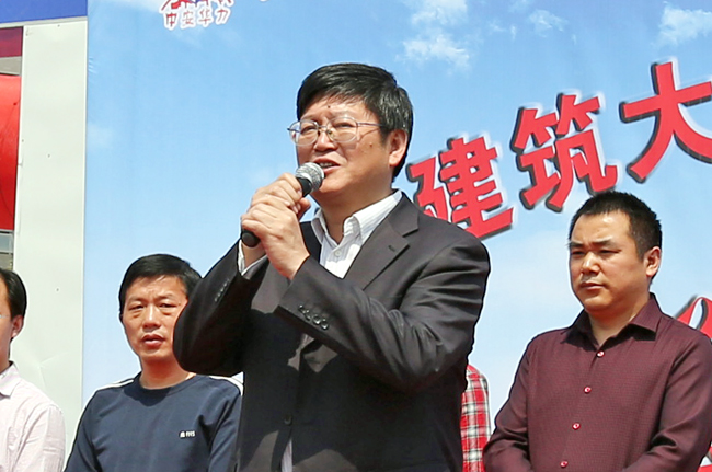 王坤董事长代表施工企业首先发言:作为建筑大学学生,回母校参与建设,既高兴又激动。华力建设很多同事都有安徽建筑大学学习的经历,能为母校建设贡献一份力量,是我们应尽的职责。我们将秉承“尊重业主、服从设计、配合监理、接受监督”的理念,向社会交一份放心工程,向母校交一份满意工程。